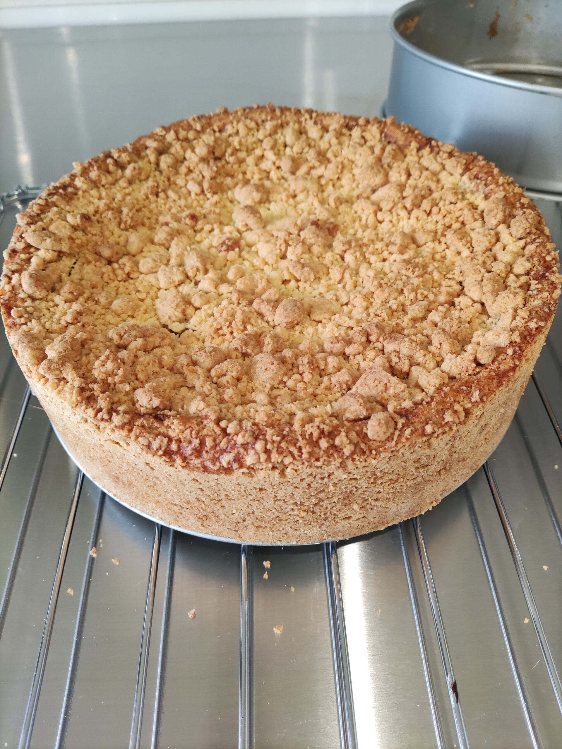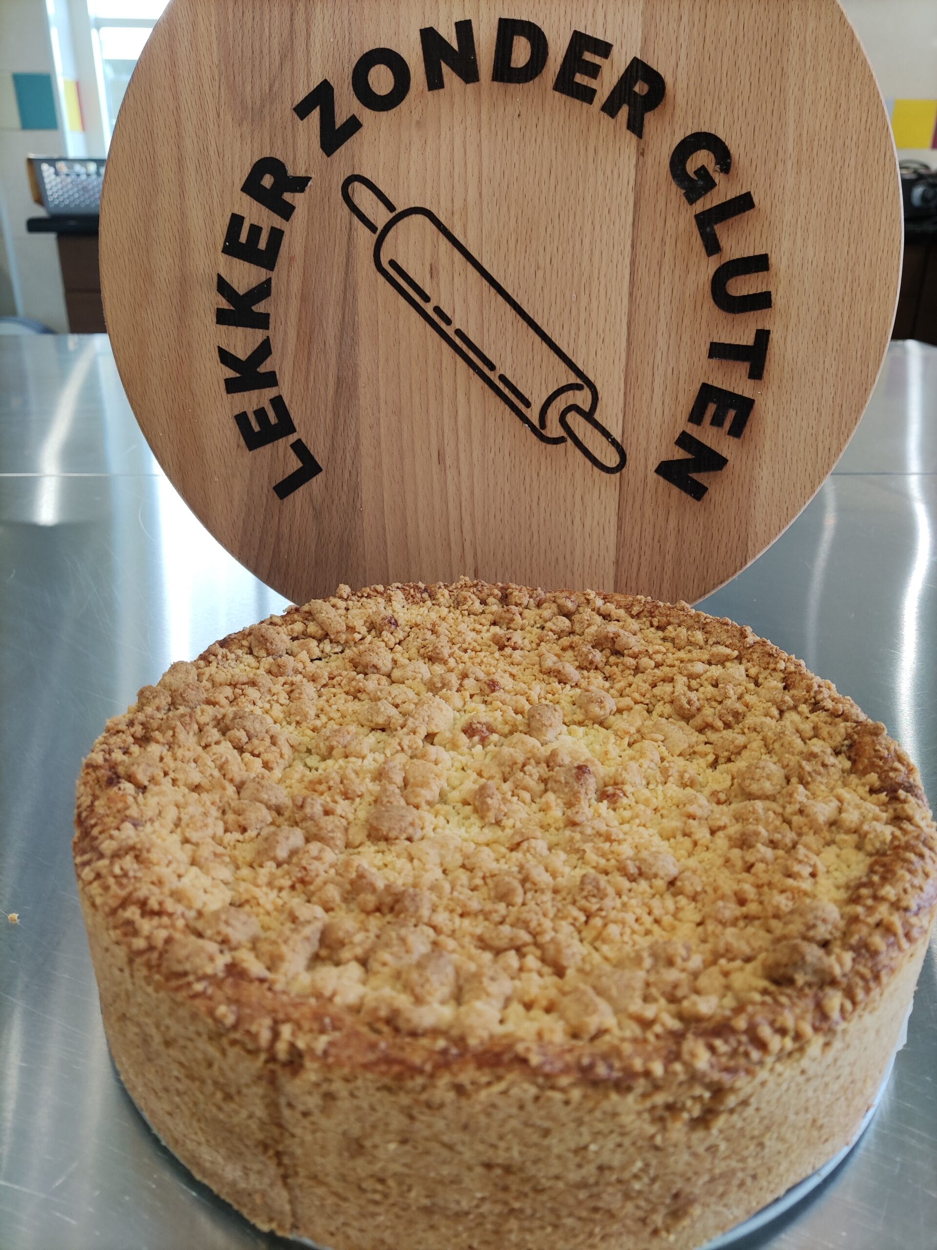 Op ambachtelijk wijze gemaakte glutenvrije appelkruimeltaart vol met verse appelstukjes, kaneel en een vleugje sinaasappel.